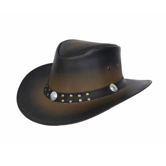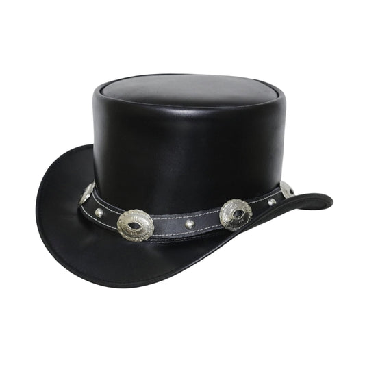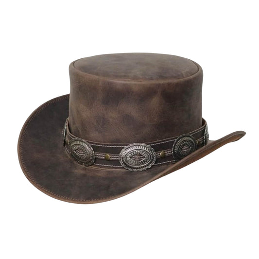 Distress Conchos Style Leather Top Hat