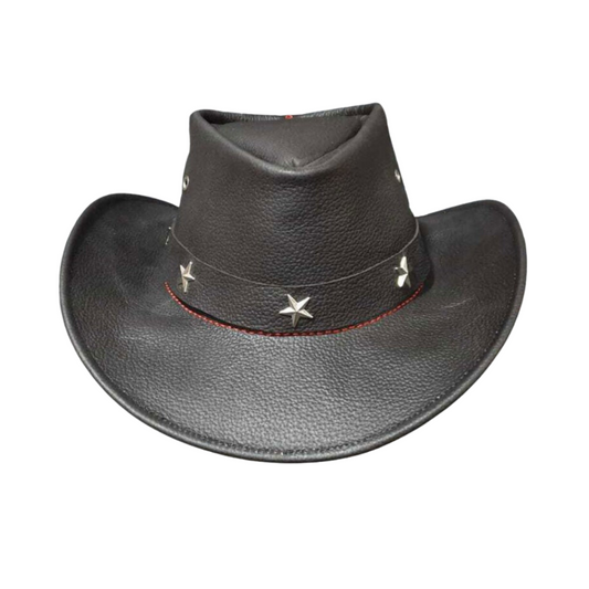Premium Black Leather Cowboy Hat