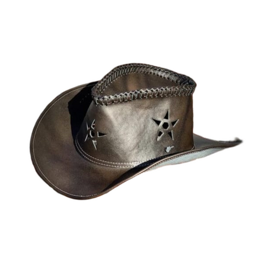 Rugged Brown Leather Cowboy Hat