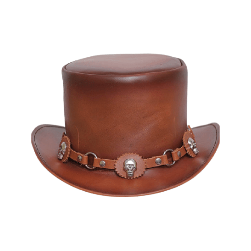 Cowhide Brown Steampunk Leather Top Hat