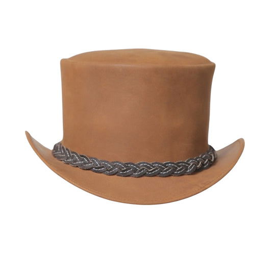 Tan Braided Brown Leather Top Hat
