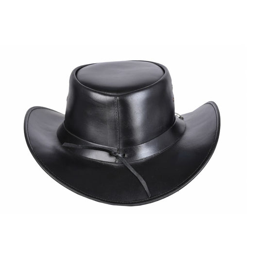 Skull Black Leather Cowboy Hat