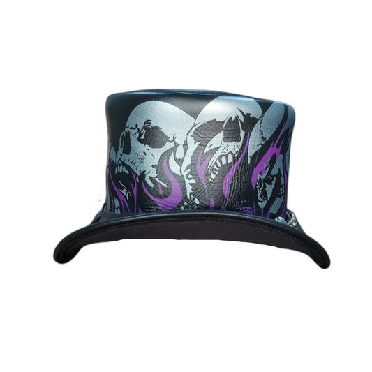 Skulls & Fire Print Leather Top Hat