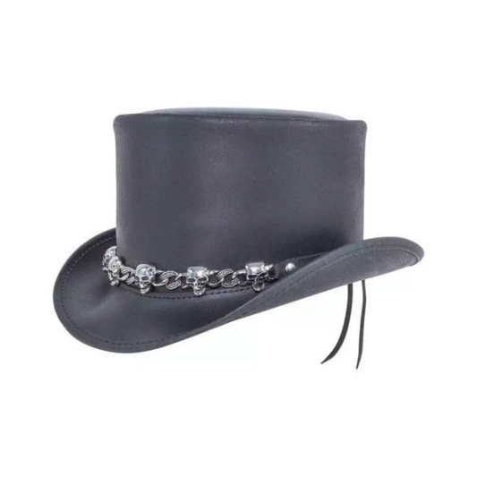 Silver Skull Chain Cowboy Leather Top Hat