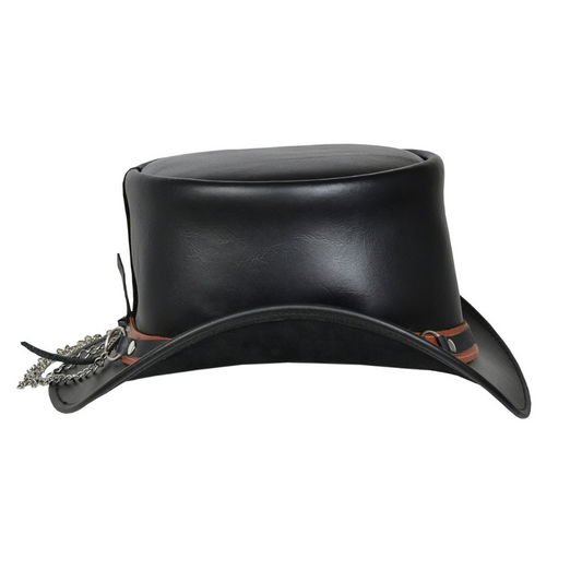 Metal Chain Leather Top Hat