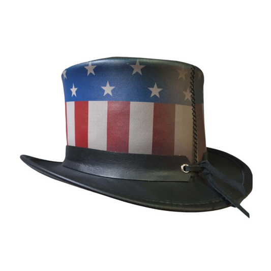 PATRIOTIC AMERICAN FLAG LEATHER TOP HAT