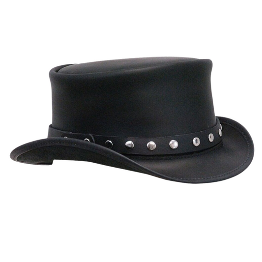 Rivet Trim Black Leather Top Hat