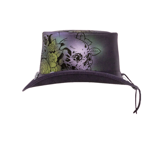 Skull & Roses Style Leather Top Hat