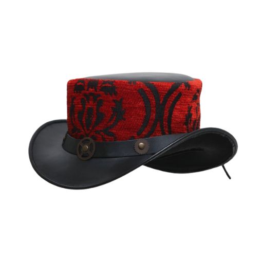 Red Mini Steampunk Leather Top Hat
