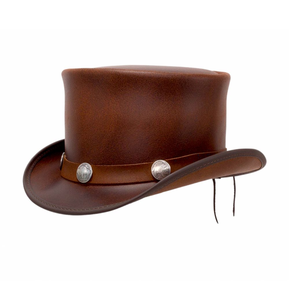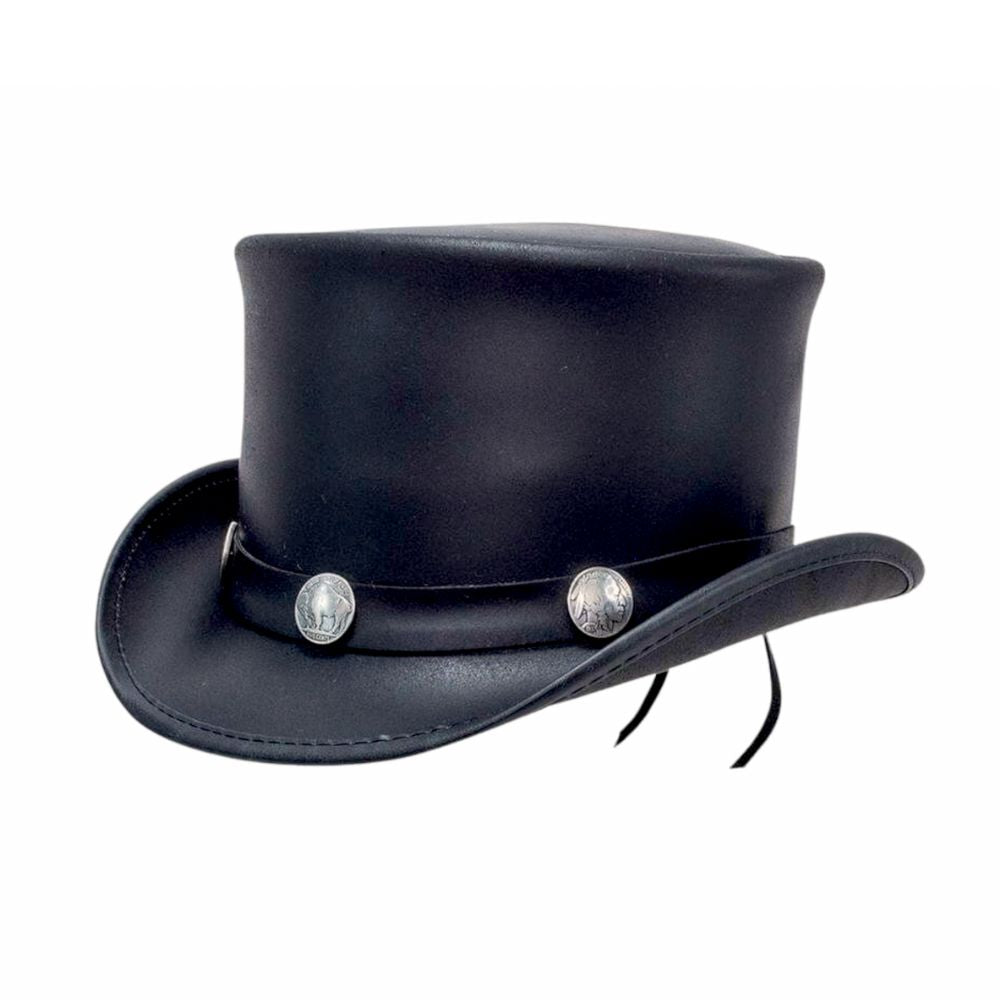 Western Bull Metal Buttons Leather Top Hat