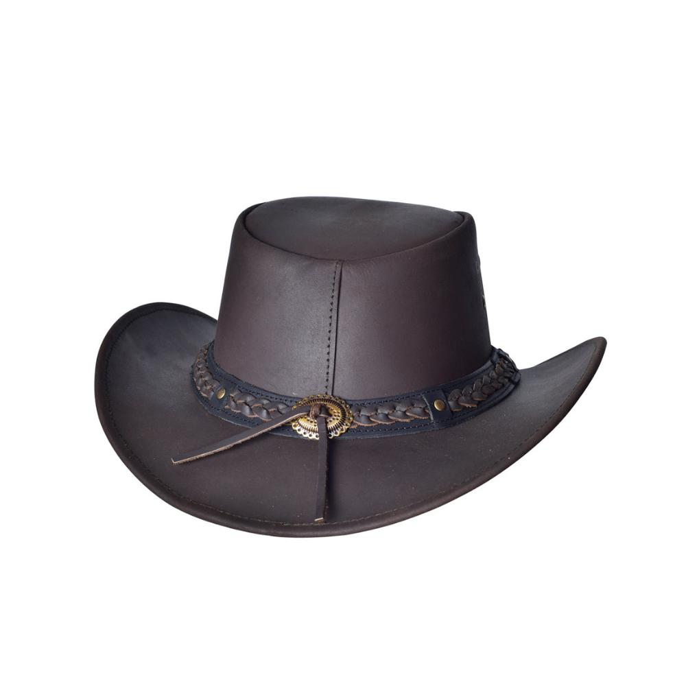 The Hilason Premium Cowhide Leather Cowboy Hat is crafted from durable cowhide leather, offering timeless style, comfort, and a versatile chocolate brown color.