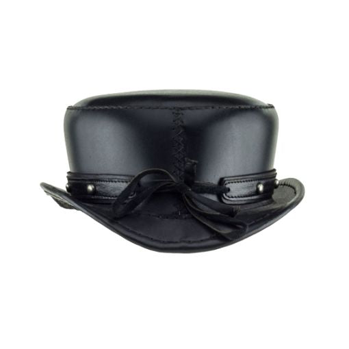 This handcrafted leather top hat features a studded band for a touch of edginess. Made from high-quality leather, it offers comfort and style for any occasion.