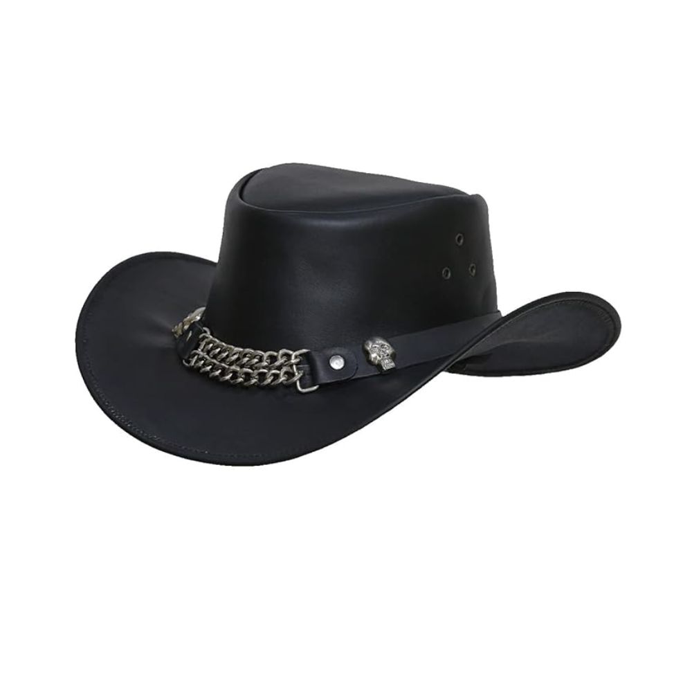 Western Skull Cowboy Leather Top Hat