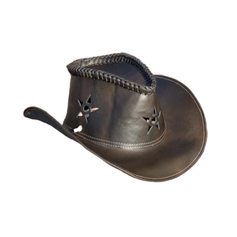 This handcrafted leather cowboy hat, made from premium genuine leather, features a distinctive star design and is built for durability and comfort all day long.