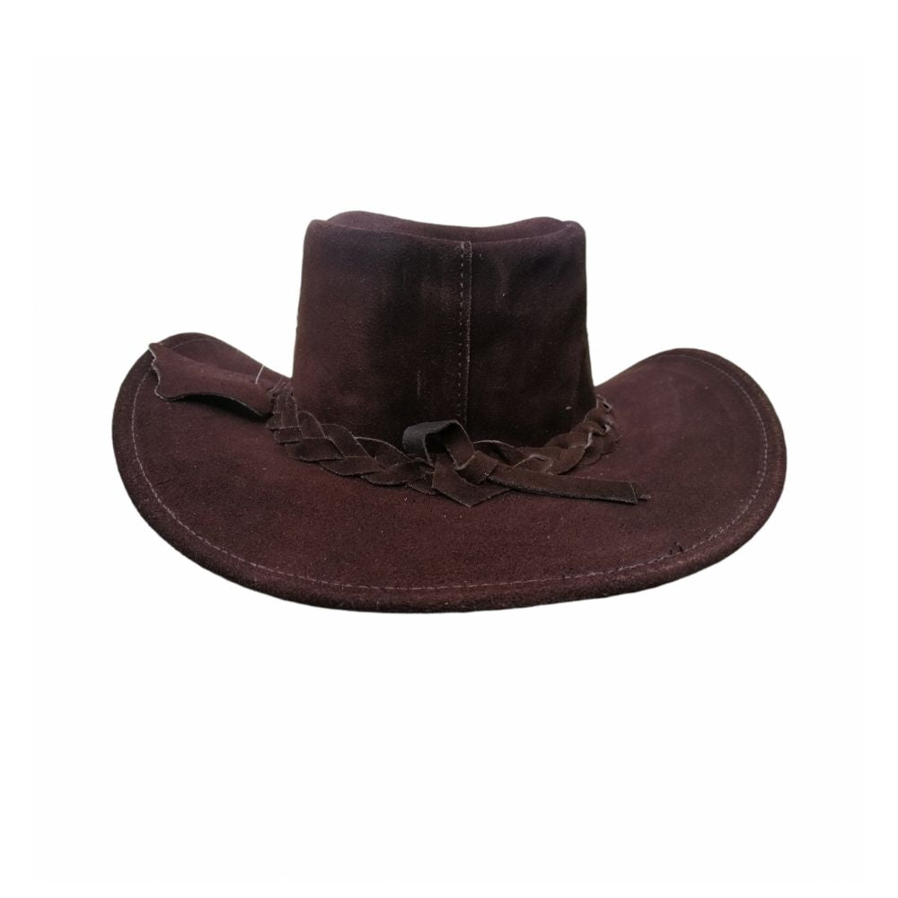 This handcrafted dark brown leather cowboy hat is made from 100% pure leather, offering authentic Western style, durability, and natural marks for added authenticity.